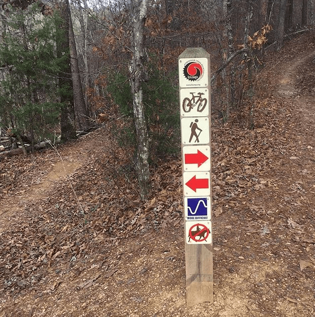 There are two trailhead kiosks. The North Trailhead is located near Farley Field at the base of the Montevallo Stagecoach Road. The South Trailhead is beside the Collins house just behind the Iron and Steel Museum. There are Trail Maps located in the kiosks and they can also be picked up at the country store or downloaded here. The trail system is made up of several different loops that are color coded on the trail map as well as the trail signage. All trails are bidirectional.
